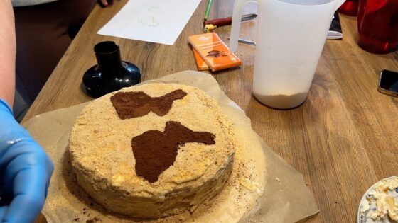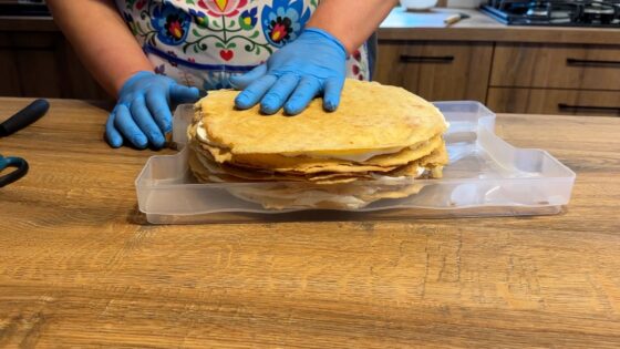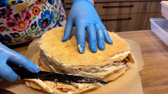 Oprócz pisanek, w domu Rogalskich powstają także świąteczne wypieki. Jednym z nich jest tradycyjny „Marcinek” – wielowarstwowe ciasto przełożone kremem.